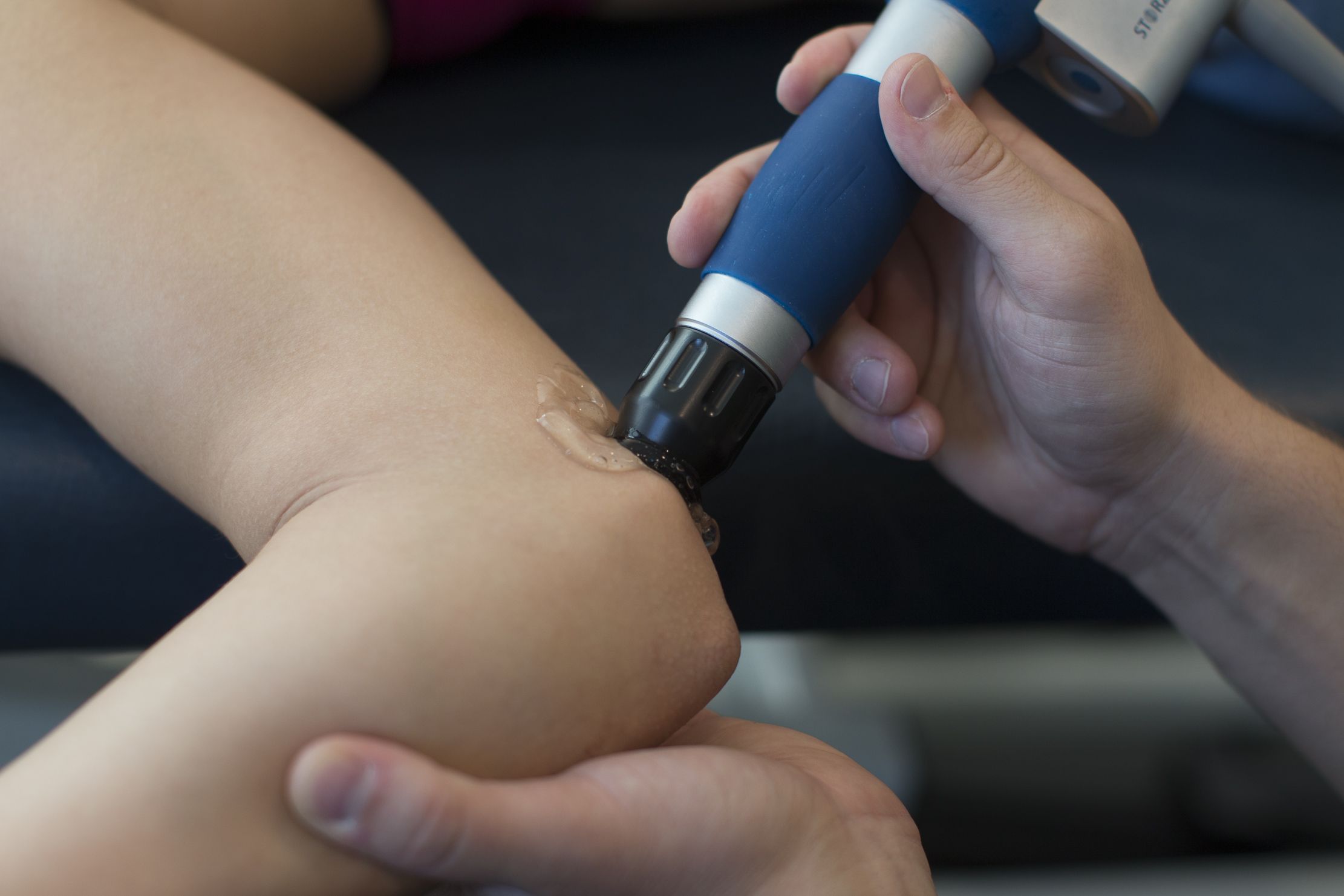 Trykkbølgebehandling lager pulserende sjokkbølger som plasseres over smerte område. En behandlinger kan være noe smertefull, men tar kort tid å gjennomføre.